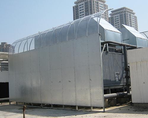 在冷卻塔排風(fēng)機(jī)進(jìn)風(fēng)口和出風(fēng)口安裝消音器,可以合理、有效地控制噪聲。